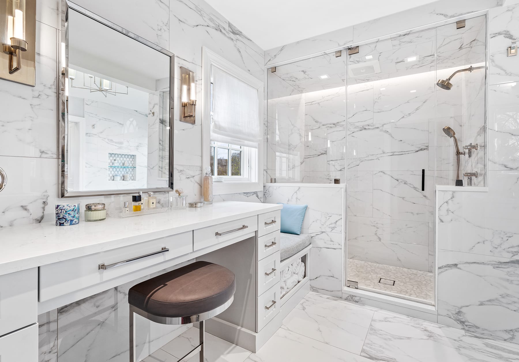 Turning this vision into reality required careful planning and execution to create a cohesive transition between indoor and outdoor spaces. The design needed to encompass not only the master bathroom but also the garage and sunroom, ensuring that each element enhances the overall aesthetic and functionality.