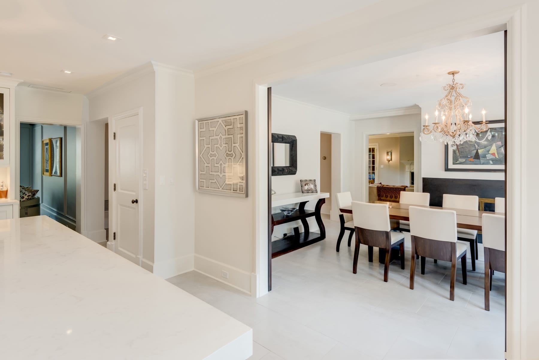 From the sprawling first-floor spaces, including the kitchen, mudroom, pantry, dining area, foyer, and staircase, the aim was to redefine each corner while maintaining a sense of unity and seamless flow.