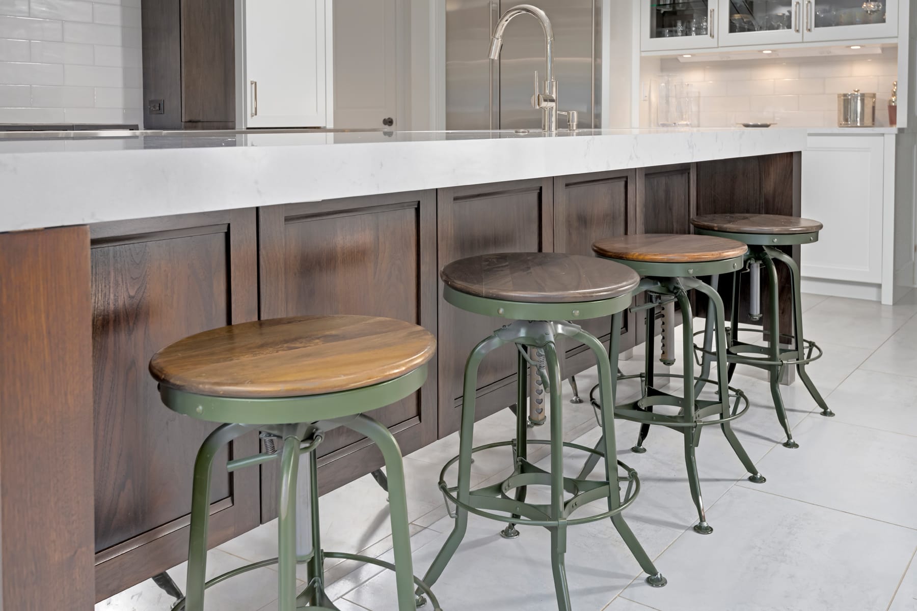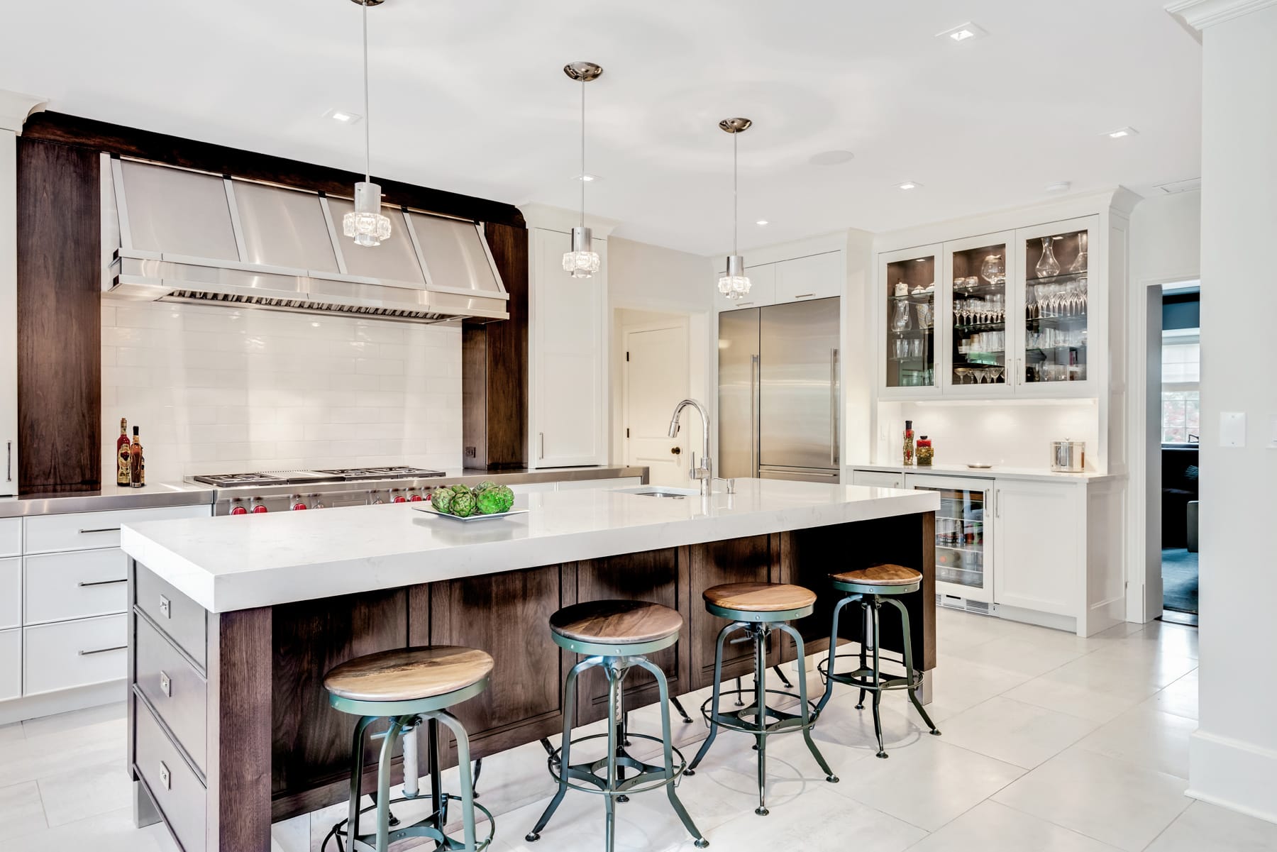The meticulously designed thickened edge mitered island countertop embodies the essence of meticulous care that defined this project. As you step into this Winnetka residence, you step into a world where every corner is a testament to the power of bespoke design – an experience where artistry and practicality meet, and the rhythm of everyday life is elevated to a symphony of refined living.
